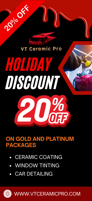 EXCELLENT Based on 13 reviews Posted on Suzette RennisonTrustindex verifies that the original source of the review is Google. I recently had my Porsche 911 detailed, and I couldn’t be happier with the results. The level of care and attention to detail was exceptional and every inch of the car looks flawless. Ivan spent a tremendous amount of time making sure everything was perfect, and it really shows in the final result. On top of his outstanding work, the price was extremely fair. It’s rare to find someone who combines skill, passion, and professionalism like this. I’ll definitely be returning and highly recommend VT Ceramic Pro to anyone who wants their car looking its absolute best.Posted on Mary Bernard PachecoTrustindex verifies that the original source of the review is Google. We had our 2020 white Nissan Sentra detailed by our friend and BJJ teammate Ivan, and WOW — this car has maybe been through a car wash twice in its life and was filthy inside and out. He completely transformed it. He hand-cleaned every inch, used his own proprietary solutions, and finished it with a ceramic-based exterior protectant. The inside smells amazing — not perfumey, just genuinely clean — and the whole car finally looks respectable again. Ivan puts so much care and skill into his work. Highly recommend him to anyone looking for a detail that goes way beyond the basics, and at a great price for every budget.Posted on Abdul SamadTrustindex verifies that the original source of the review is Google. Ivandid a great job tinted my Honda CRV it looks so good I had to tell my friends and family members.Posted on Freddy RiosTrustindex verifies that the original source of the review is Google. Ivan did a fabulous job with two of our cars. He explained everything very well and even gave me different package options to choose from. I will definitely be calling him again.Posted on mahida ghansarTrustindex verifies that the original source of the review is Google. Ivan did an amazing job cleaning my car - Interior and exterior. Attention to detail was phenomenal. The after shine on my car looks great! Highly recommend.Posted on Nuradil KozhakhmetTrustindex verifies that the original source of the review is Google. Ivan was super responsible and careful with my car. he washed my car for longer than I originally asked for, since he wanted to make sure that the car is absolutely clean. thank you Ivan.Posted on zack kingTrustindex verifies that the original source of the review is Google. Awesome work from Ivan, I would definitely recommend his work to anybody who is wanting to get their vehicle looking perfect!Posted on Natalie SanchezTrustindex verifies that the original source of the review is Google. Ivan did an outstanding job detailing both the interior and exterior of my car. His attention to detail is remarkable, and I’ve noticed my car stays cleaner much longer compared to other places I’ve been to. Ivan takes great pride in his work, and it really shows. He’s not only detailed but also friendly, professional, and provides excellent customer service. He’s quick to respond, flexible with scheduling, and always makes the process easy. I highly recommend Ivan for anyone looking for top-notch car detailing!Posted on trevor hTrustindex verifies that the original source of the review is Google. Car literally looks and feels like it came off the factory floor. Highly recommend Ivan and his team!Posted on Gilda Garcia82Trustindex verifies that the original source of the review is Google. Very professional, fast and very detail. Got my first car ceramic tint and the job was perfect so i had to get my other car tinted as well. Love it. Totally recomening!!! Price is so much better than other places.